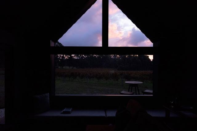 - Coteaux du Layon : vignes en pente douce vers la Loire, reflets du ciel rouge sur les eaux du fleuve en contrebas.